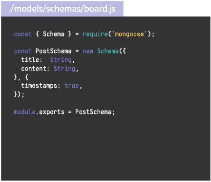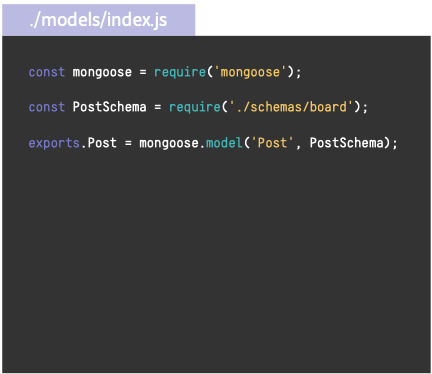 작성된 스키마를 mongoose에서 사용할 수 있는 모델로 만들어야 함.